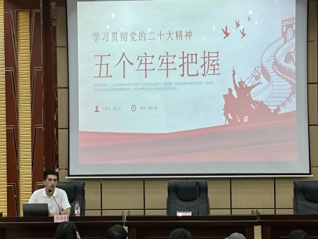 6月19日,学校团委组织第七期“青马班”学员学习贯彻党的二十大精神,深刻领会“五个牢牢把握”的政治内涵。