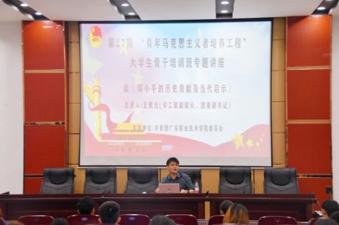 2020年12月至2021年6月,共青团广安职业技术学院委员会开展了青年马克思主义者培训工程大学生骨干培训班专题活动及讲座,本期青年马克思主义者培训工程大学生骨干培训班以“政治坚定、德才兼备、素质全面、模范表率、堪当重任”为主题,引领带动我校学子做社会主义核心价值观的坚定信仰者、积极传播者、模范践行者,为他们逐步成长为坚定的马克思主义者奠定基础。