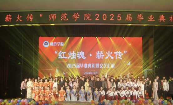 12月17日,师范学院“红烛魂·薪火传”2025届毕业典礼暨文艺汇演在杏坛举行,学校党委委员、副校长冉嘉洛,学工部部长黄宏芮,学院全体领导,辅导员及毕业班学生代表齐聚一堂,为2025届毕业生送上最真挚的祝福,同话往昔,共启新程。