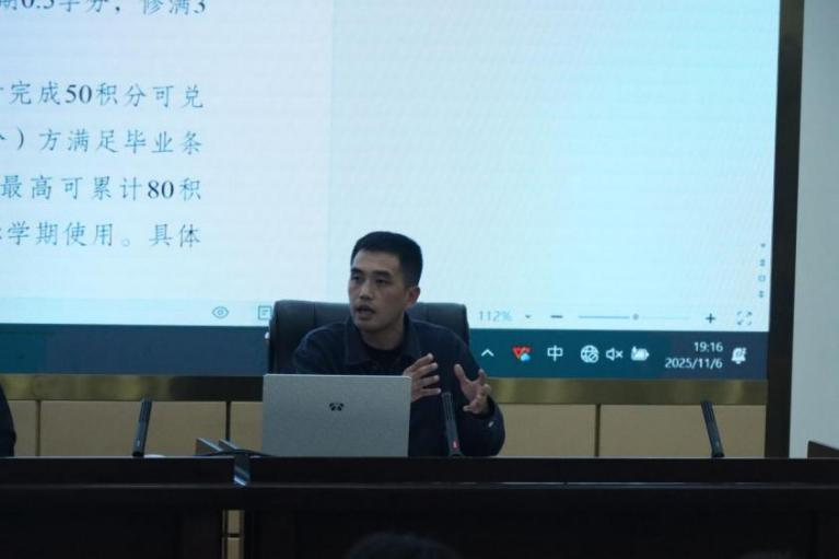 范力文老师解读了修订后的《“第二课堂成绩单”制度实施办法》,说明该制度是学校推进“五育并举”、创新人才培养的重要举措,通过优化内容设计与积分认定,构建更科学的成长评价体系。