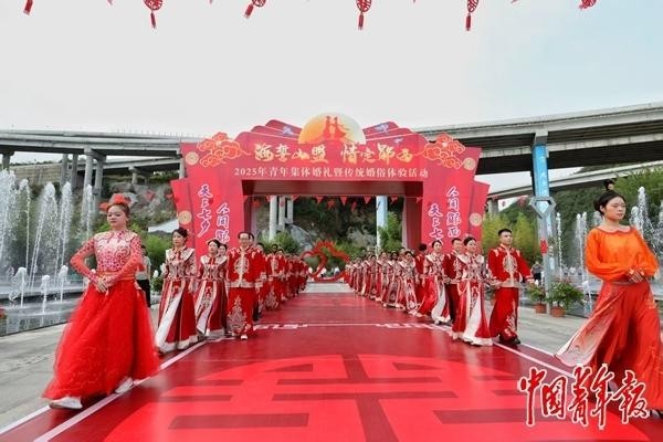 8月28日,“海誓山盟·情定郧西”2025年青年集体婚礼暨传统婚俗体验活动在“中国七夕故里”湖北省郧西县举办。中青报·中青网记者 李建泉/摄